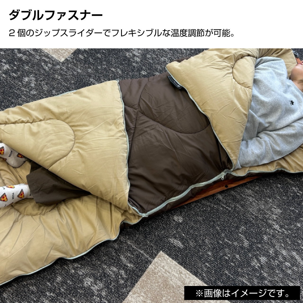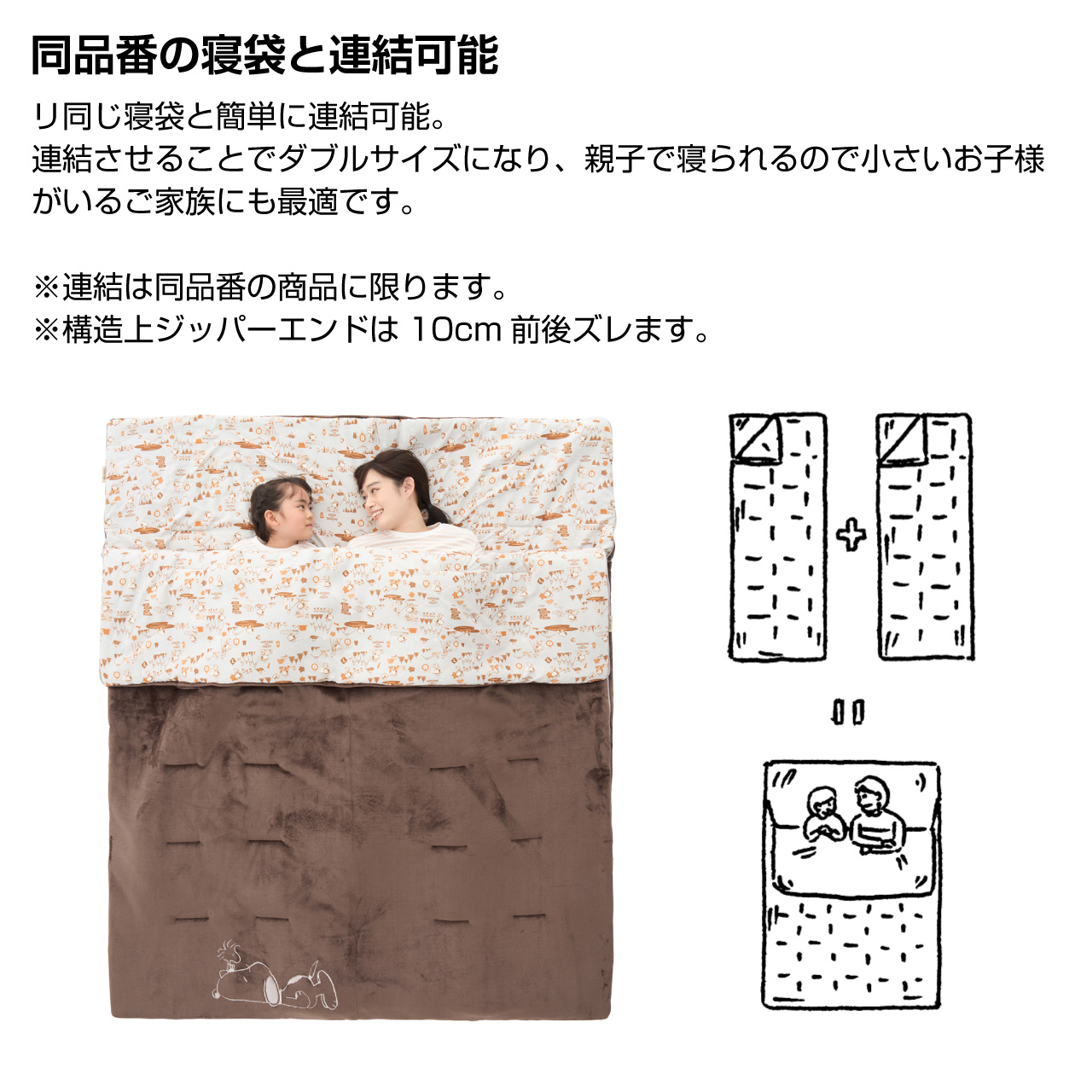 同一シュラフで連結してWサイズにすれば親子で添い寝もできます。