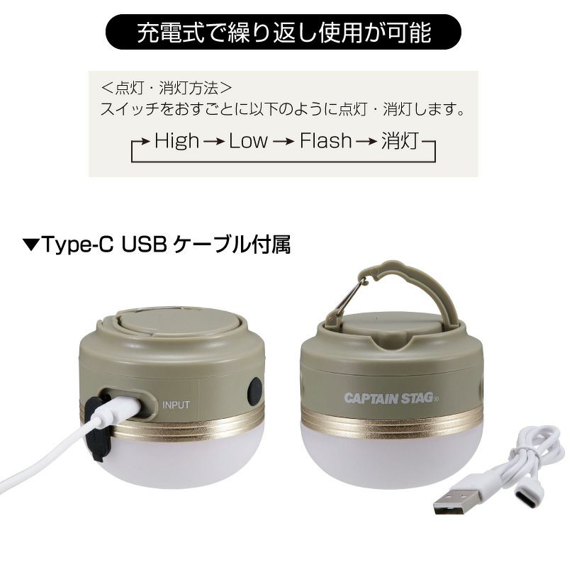明るさ:HIGHモード=約180ルーメン、LOWモード=約100ルーメン