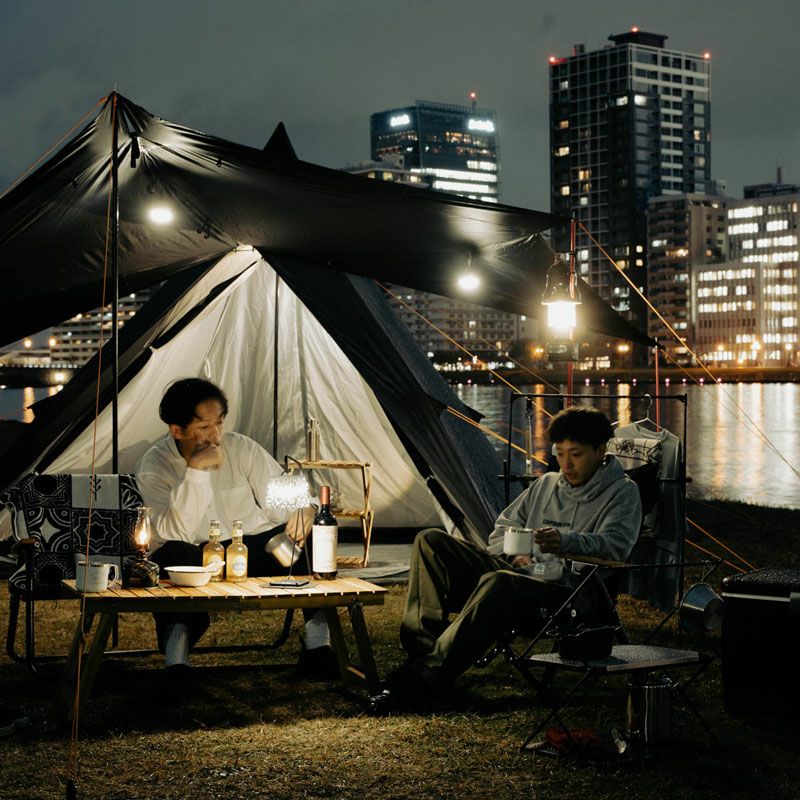 マグネットでテント生地を挟んで使用可能。