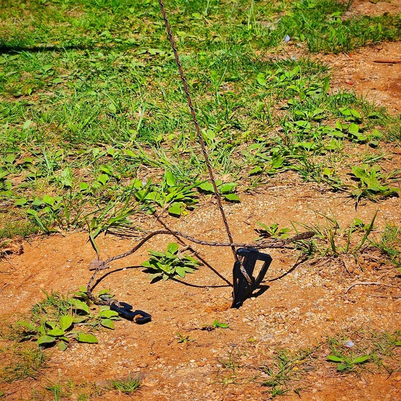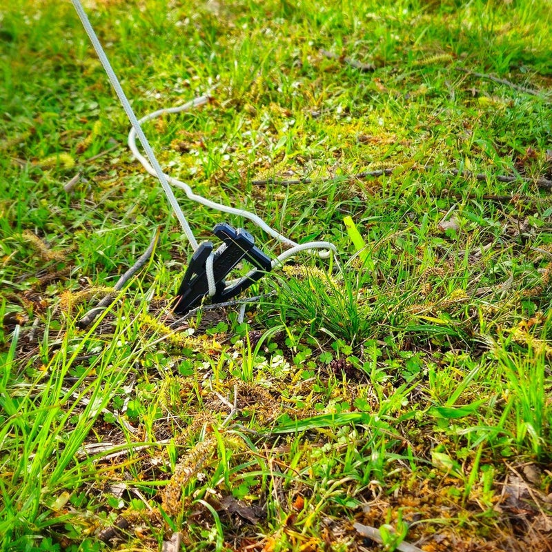 ブッシュクラフトやクライミングなどでも用いられる「ロープの屈折による摩擦力」を応用し、「自在金具」がなくても簡単にラインの張り具合を調整、固定することができます。