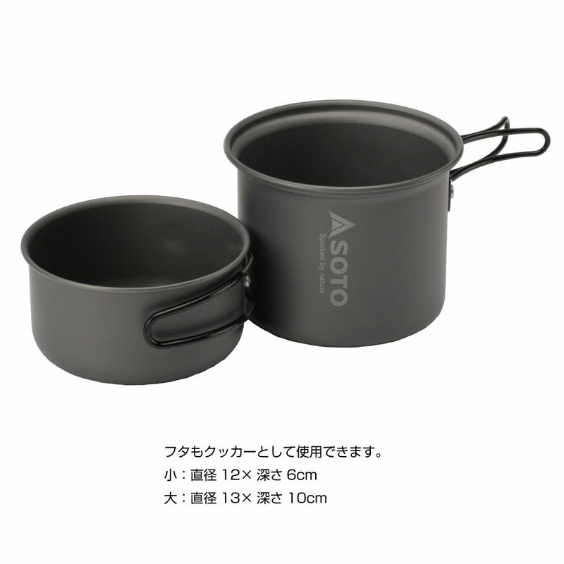 クッカー小(容量:500ml)とクッカー大(容量:1,000ml)のセットです。