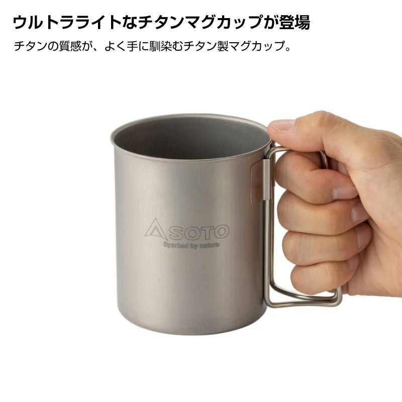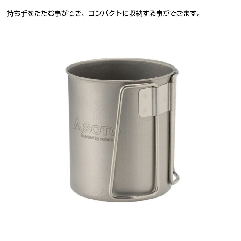 板厚0.3mm ハンドル折りたたみ式の軽量チタンマグ。