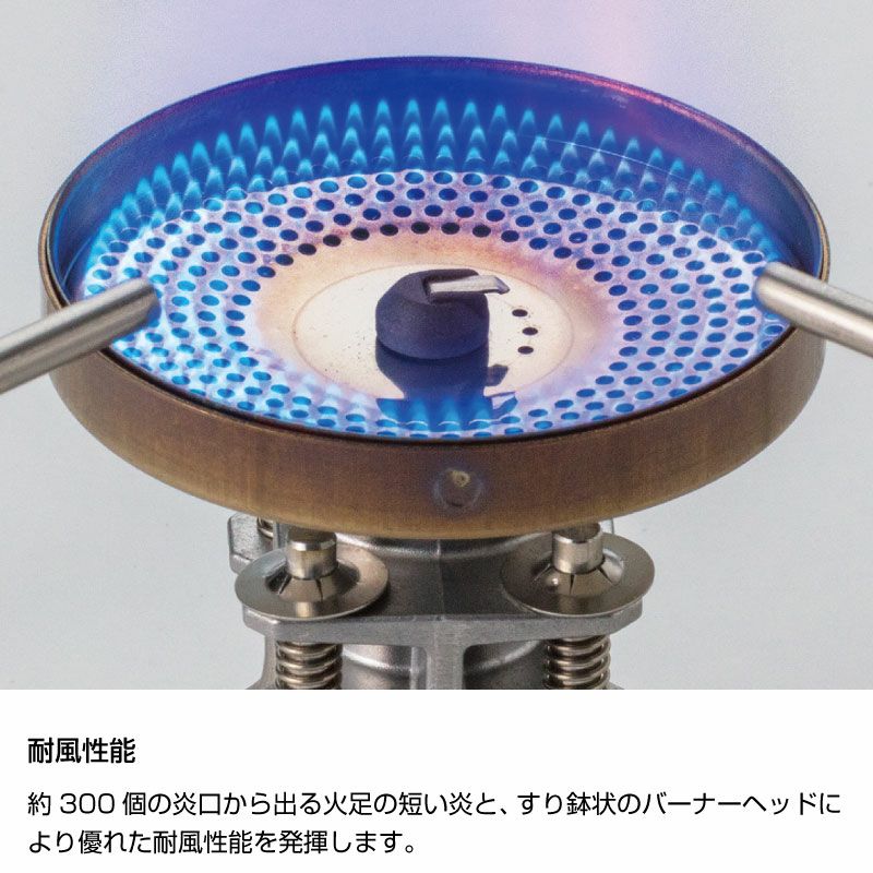全炎口型の火口とすり鉢状のバーナーヘッドにより、優れた耐風性能を実現。