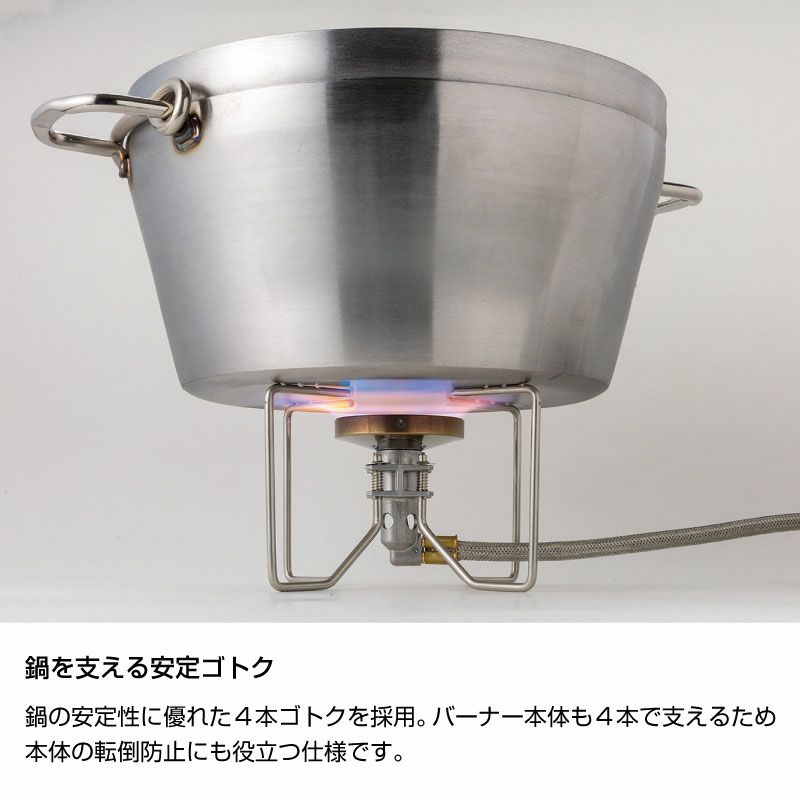 連続使用時や低温時のボンベ内の圧力低下に影響されにくく、安定した火力を発揮します。