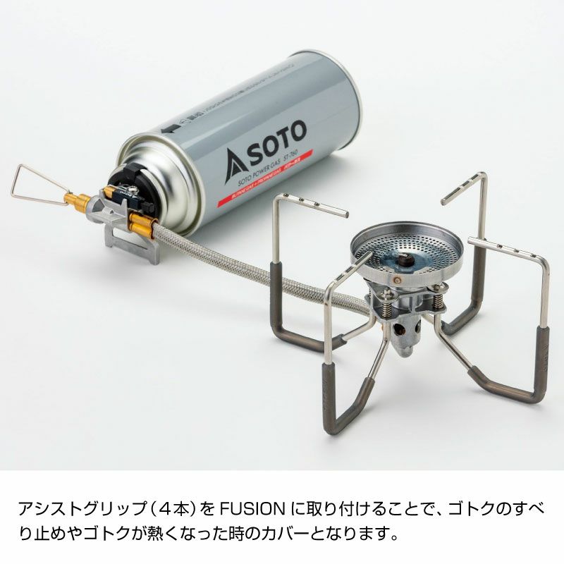 レギュレーターストーブFUSION用の軽量ポーチとアシストグリップ(4本)のセット。