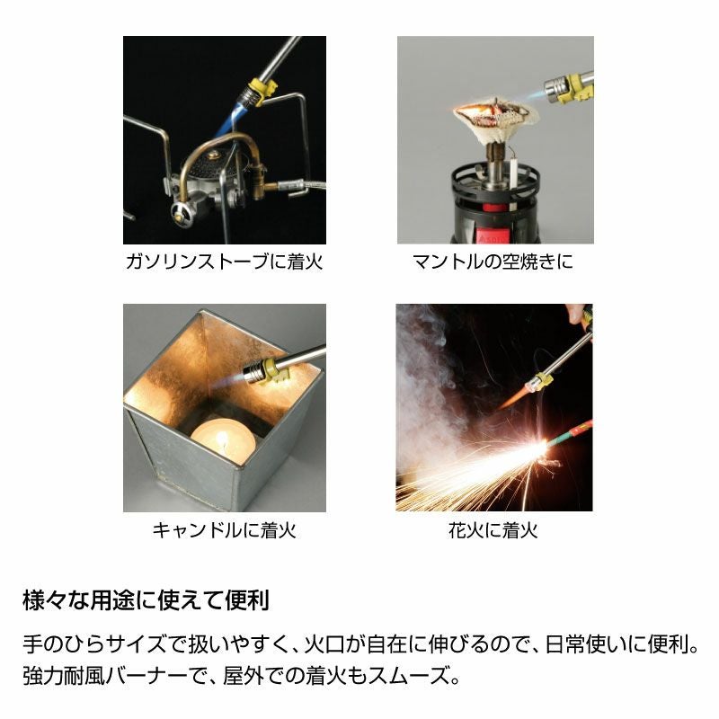 火口がのびる小型耐風バーナー。