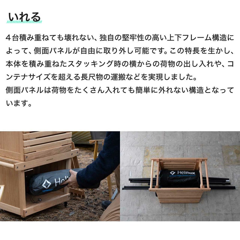 天然木材を使用した本体は木材の除湿効果と通気性の高い構造により、使用後の湿ったキャンプ道具をそのまま放置してもカビが発生するリスクを抑えます。