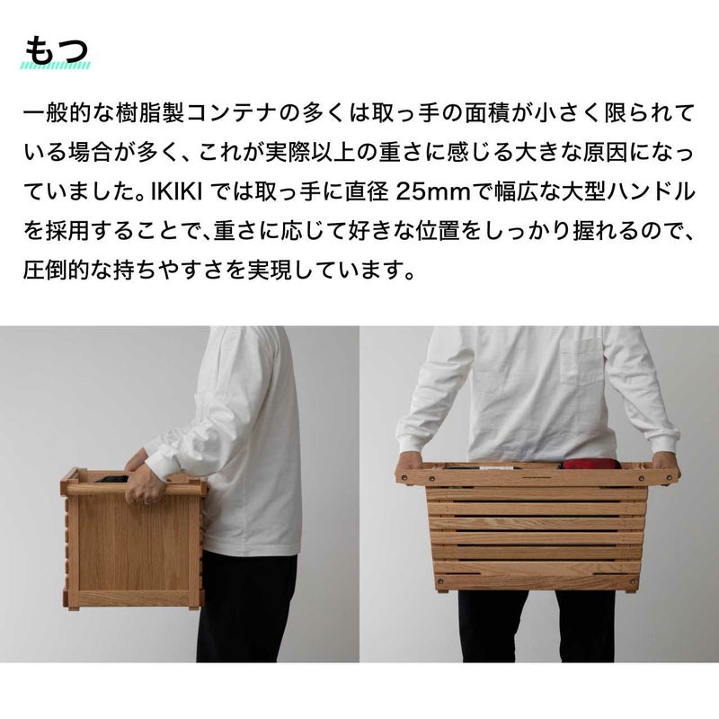 最大の特長である頑丈な上下フレーム構造と自由に取り外せる側面パネルにより、コンテナサイズを超える長尺物を持ち運べたり、上にコンテナを重ねても後から荷物の出し入れができるなど、外では機能的で使いやすいコンテナとして、家では収納に便利なシェルフとして使えるシェルフコンテナMサイズ(容量約46L)です。