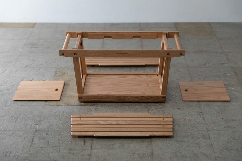 また、アウトドアでの過酷な環境でも安心してお使いいただくために、国内家具メーカーのノウハウを生かした独自の強度試験を設け、それらを全てクリアすることで木製でありながら一生使えるほどの安心強度を実現しました。