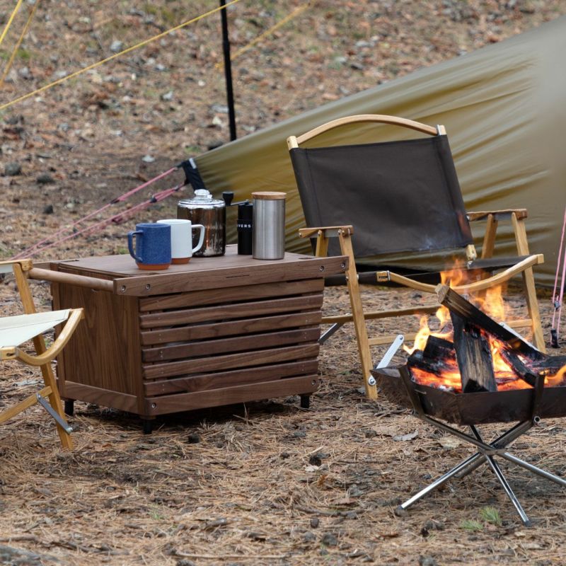 天然木材を使用した本体は木材の除湿効果と通気性の高い構造により、使用後の湿ったキャンプ道具をそのまま放置してもカビが発生するリスクを抑えます。