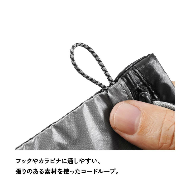 ●フックやカラビナに通しやすい、張りのある素材を使ったコードループ。グローブを付けたままでも使いやすい素材を選びました。