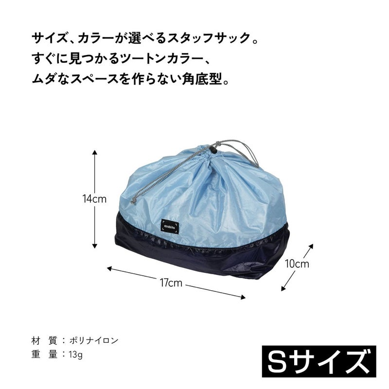 ・S(2L)サイズはクッカーとバーナー、行動食、軽めの保温着などすぐに取り出したい道具を小分けにしまうのに使いやすいサイズです。