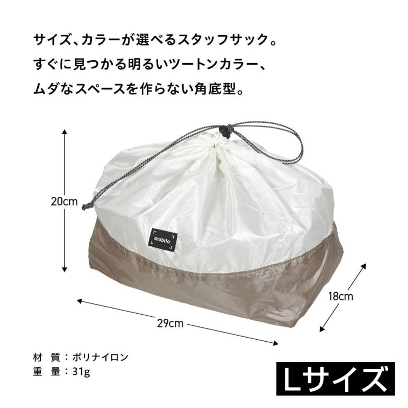 ・L(10L)サイズは寝袋、シェルジャケット、2泊以上の衣服など用途に応じてまとめて収納したい道具をしまうのに使いやすいサイズです。