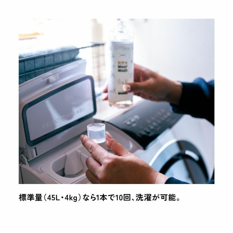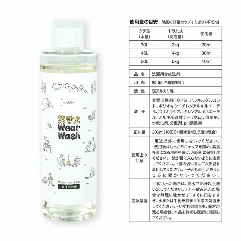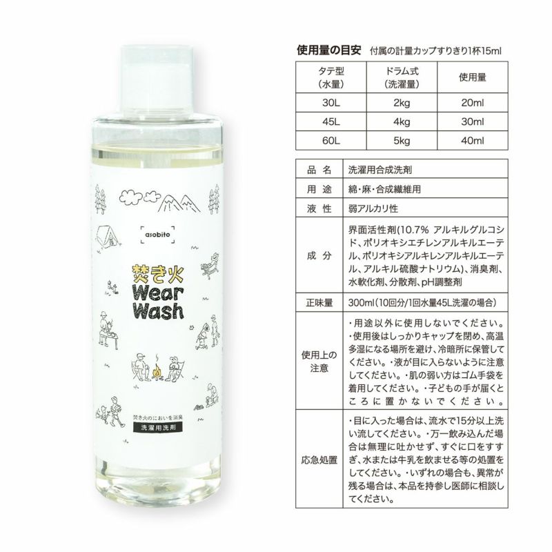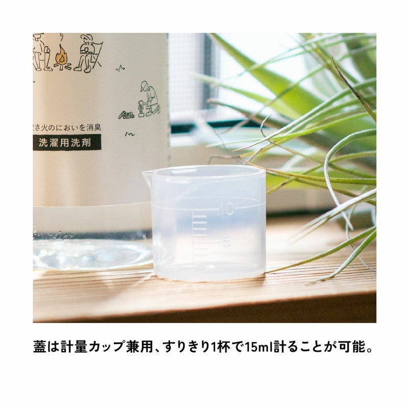 ●日常的に使用している洗剤と同じように、洗濯機に焚き火ウェアウォッシュを入れて洗うだけ。つけ置きや手もみ洗いは不要です。