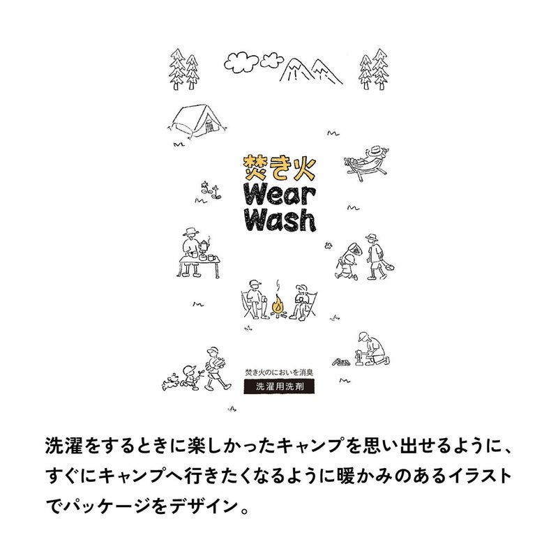 ●洗濯をするときに楽しかったキャンプを思い出し、すぐにキャンプへ行きたくなるような、温かみのある描き下ろしイラストパッケージ。
