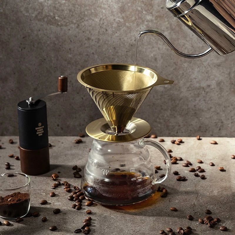 台座と一体型で製作され、カップに載せて簡単に使用することができ、高級食器などに使用されるチタンコーティング技術が施され、人体に害がなく、微細な穴とマイクロファイバースチール繊維を通して抽出されるコーヒーは、ボディ感豊かなコーヒーの味をお届けします。