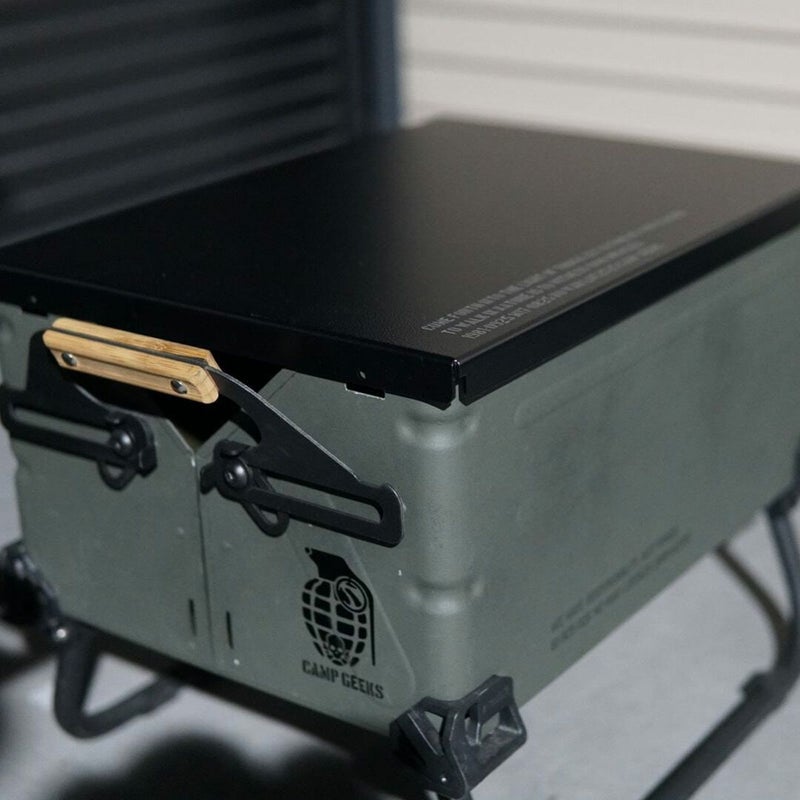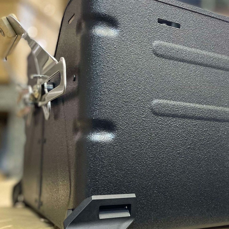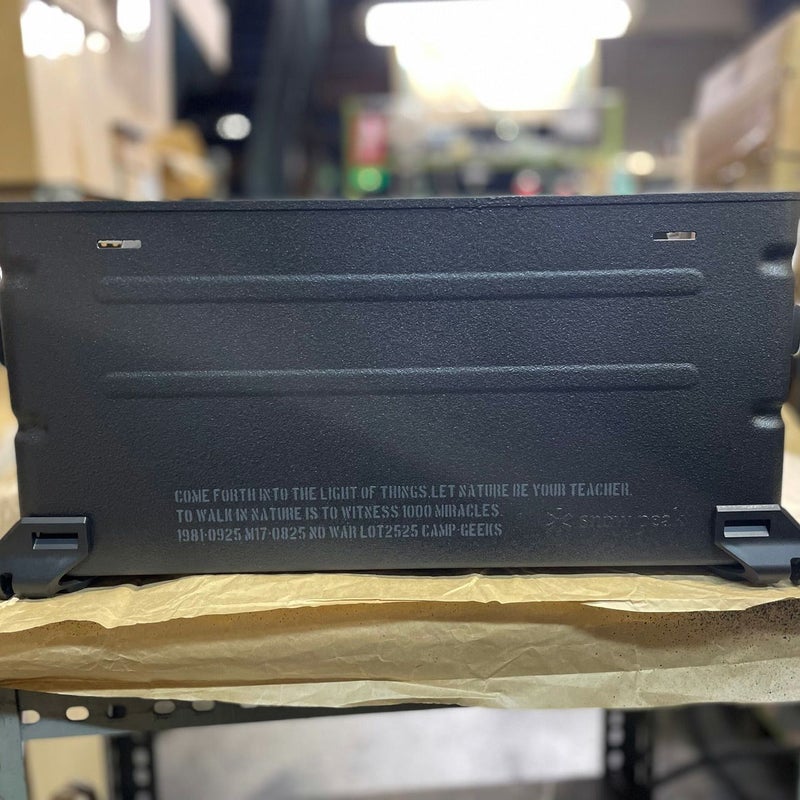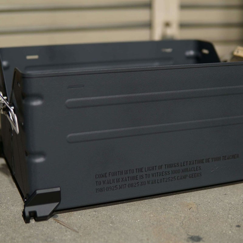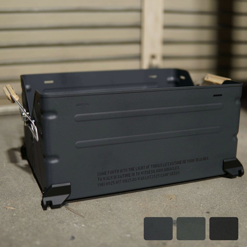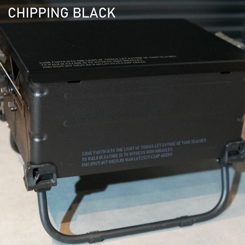 全体をチッピング焼付け塗装後、表側のみスプレーチッピングブラック塗装で仕上げております。