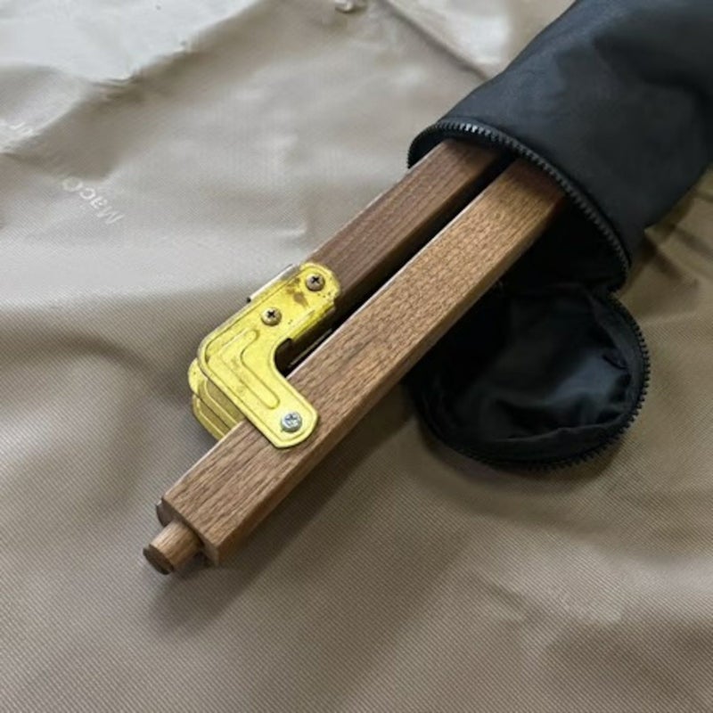 脚を収納する部分、板を収納する部分に分かれており脚を芯にして巻きつける構造を取っており最小サイズでの収納ができるよう工夫しました。