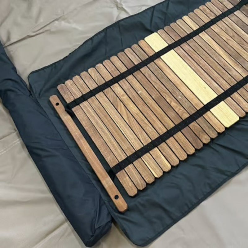 天板収納の再には布を折り返して側面を包むようにして巻くことで天面を保護できるようになっています。