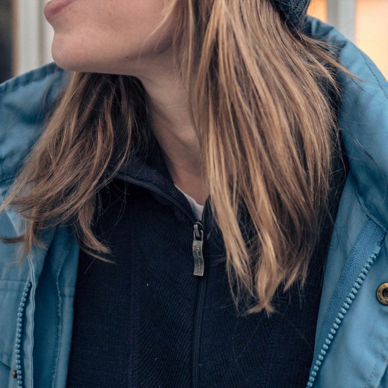 ジップを閉めることで首元まで暖められ、より高い保温効果も期待できます。
