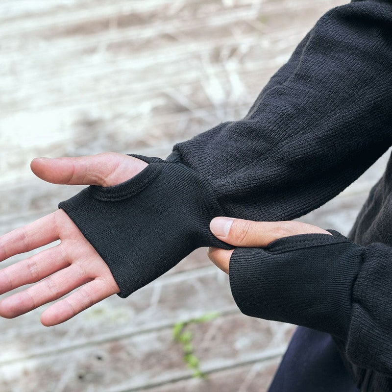 400同様、ハイネックの首元や、サムホールが付属した長めの手首まわり、