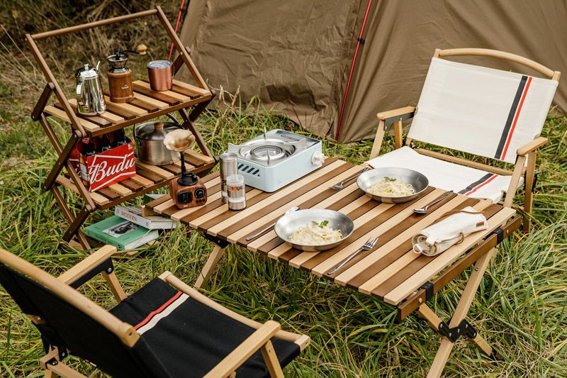 コンパクトに折りたためるおしゃれなZ型のキャンプ用ミニテーブルです。