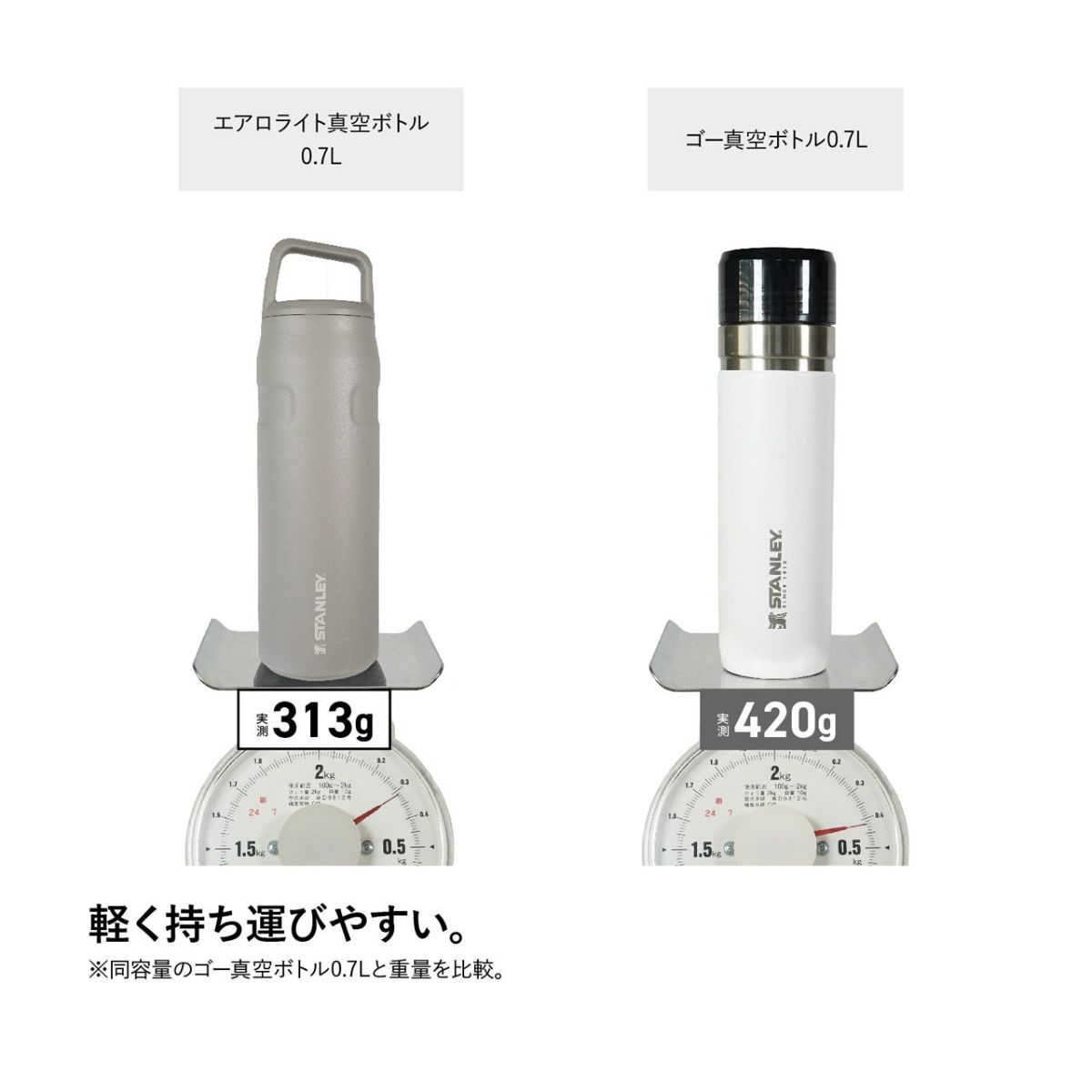 従来のボトルより約33%軽量化、軽さに驚く真空断熱ボトル