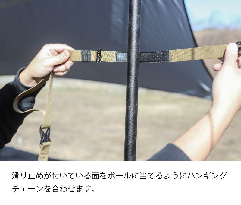 最長530cmの長さで大型タープに使用可能なハンギングチェーン。