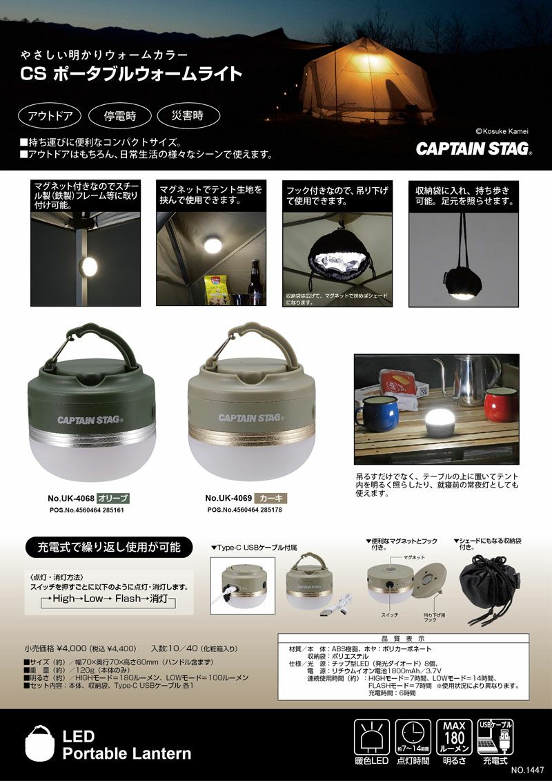 CAPTAIN STAG キャプテンスタッグ CS ポータブルウォームライト オリーブ カーキ
