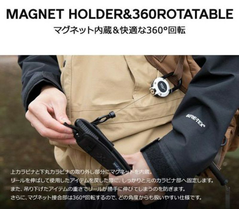 MAGNETを内蔵したカラビナ付きコードリールキーホルダー