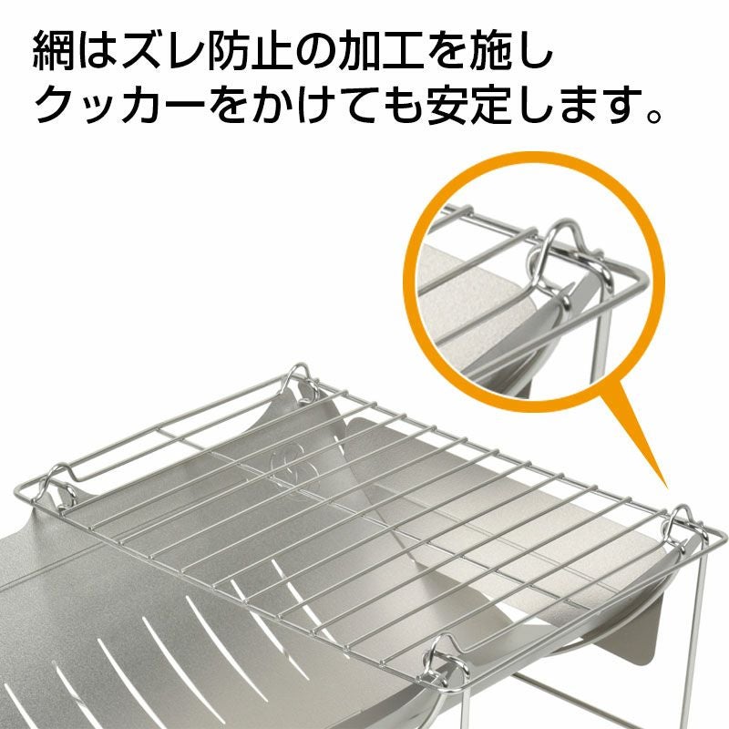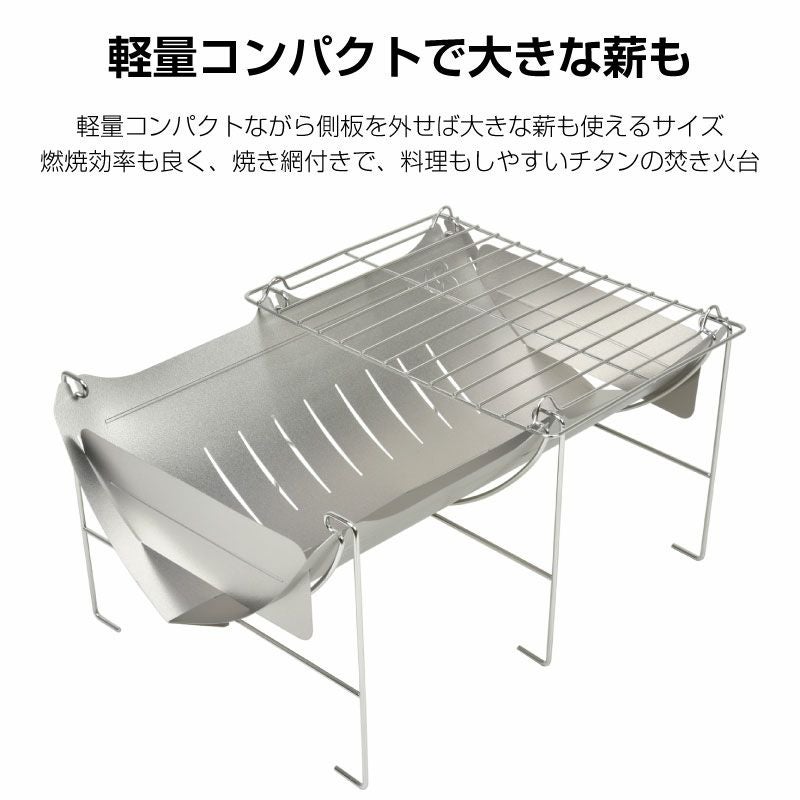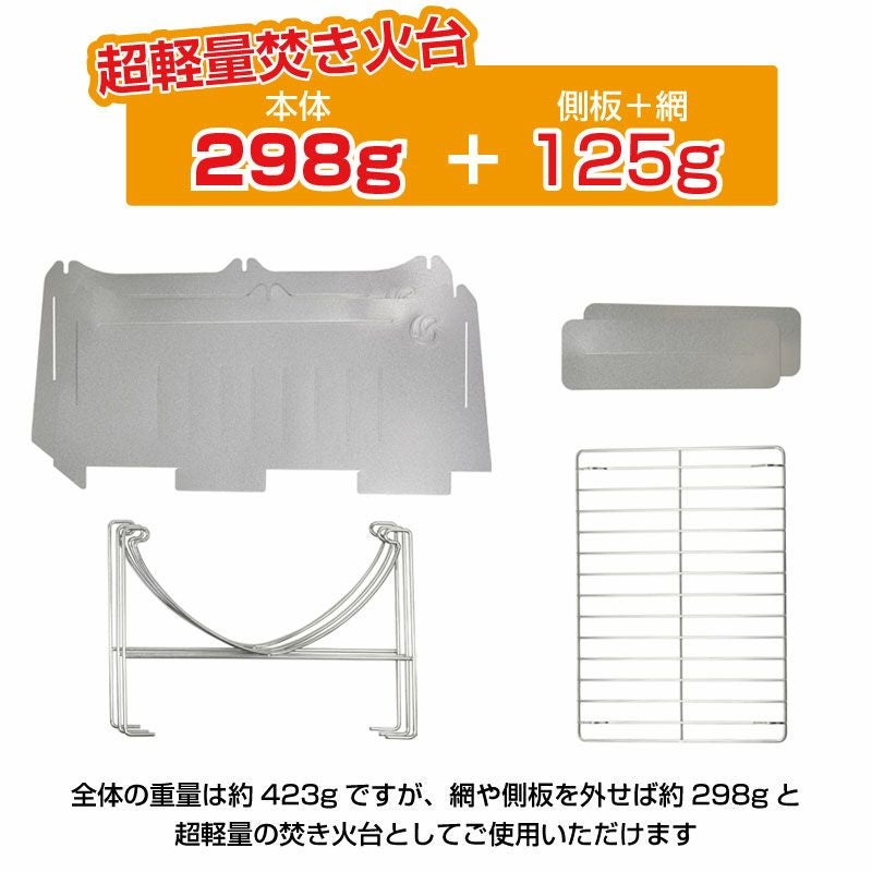 網と側板を外せば約298gの超軽量の焚き火台として