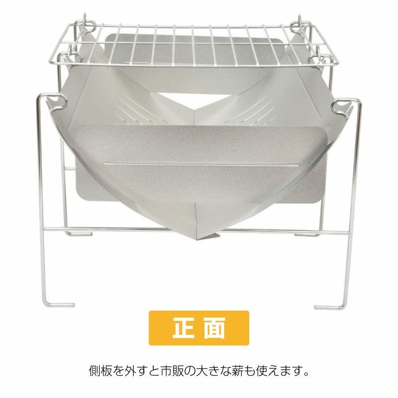 軽量コンパクトながら側板を外せば大きな薪も使えます。