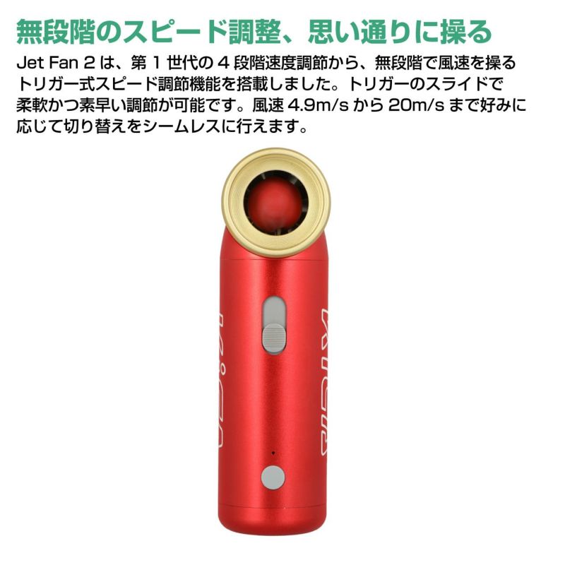 最大出力100,000RPMのブラシレスDCモーターを使用。最大20メートル/秒の風速を生み出します。