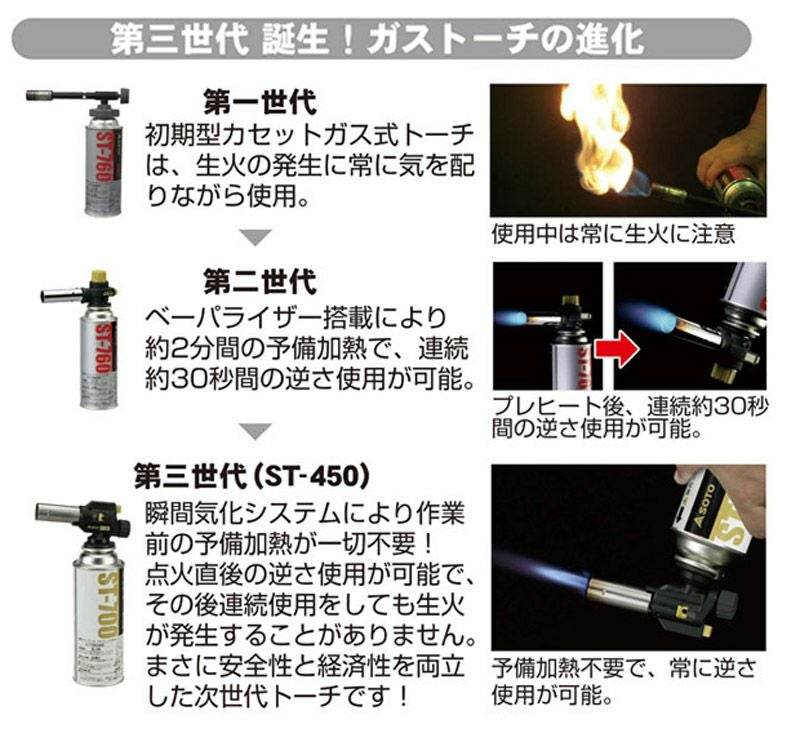 カセットガス式トーチの常識を変える「瞬間気化方式」を採用。