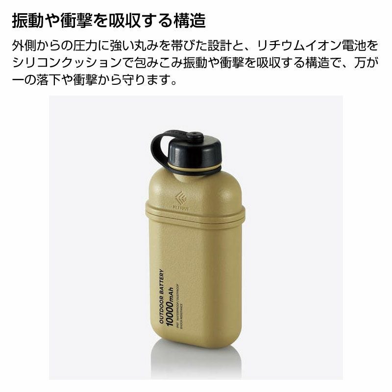 他の画像を見る アウトドアシーンに最適な防水・防塵・耐衝撃のモバイルバッテリー。別売りのパーツをを取り付けることで、LEDランタンなど様々なアウトドアギアとして使うことが可能! NESTOUT ネストアウト モバイルバッテリー10000mAH ブラック サンドベージュ 販売価格 ¥ 6,980 税込 カートに入れる お気に入りに登録する
