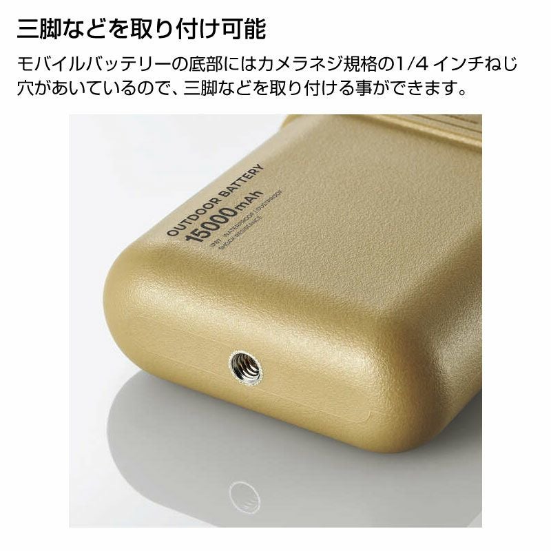 他の画像を見る アウトドアシーンに最適な防水・防塵・耐衝撃のモバイルバッテリー。別売りのパーツをを取り付けることで、LEDランタンなど様々なアウトドアギアとして使うことが可能! NESTOUT ネストアウト モバイルバッテリー15000mAH ブラック サンドベージュ 販売価格 ¥ 8,980 税込 カートに入れる お気に入りに登録する
