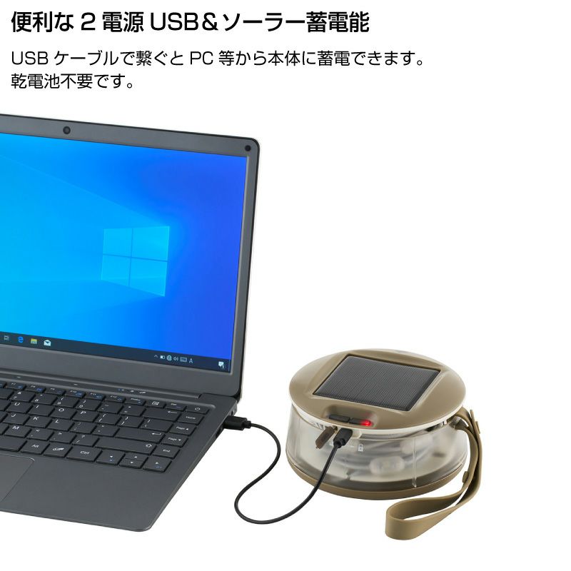 蓄電方法は、USB蓄電とソーラー蓄電の便利な2パターン。