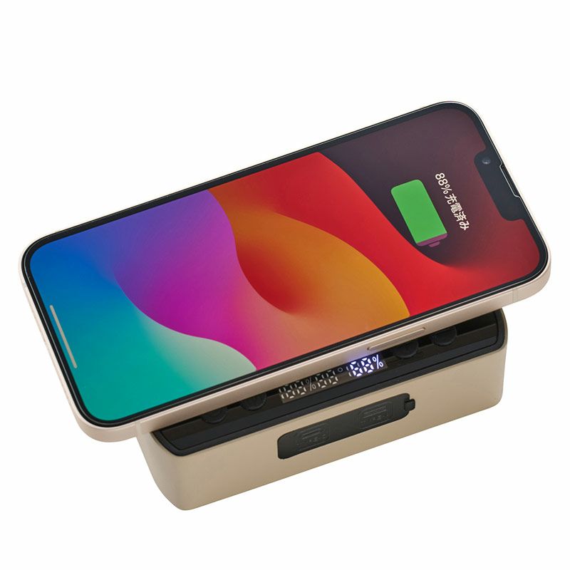 スマートフォンを置くだけで充電できるワイヤレス充電機能が備わっているため、USBコード不要で外部機器への充電が可能です。