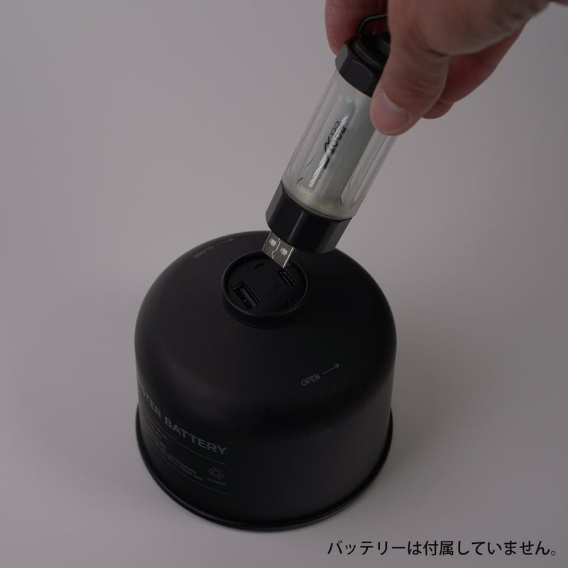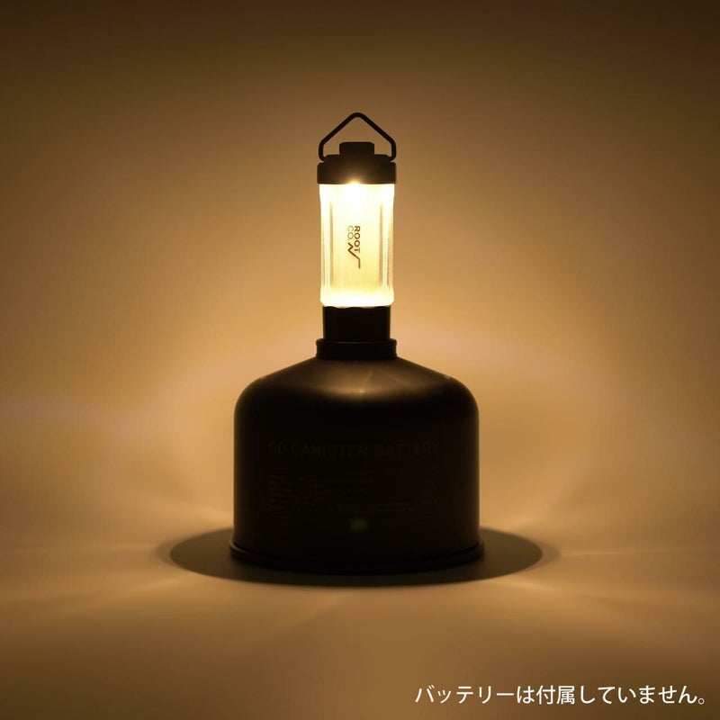 OD CANISTER BATTEY」(別売)と組み合わせることでより実用的に。本ランタンのUSB-A充電コネクタを「