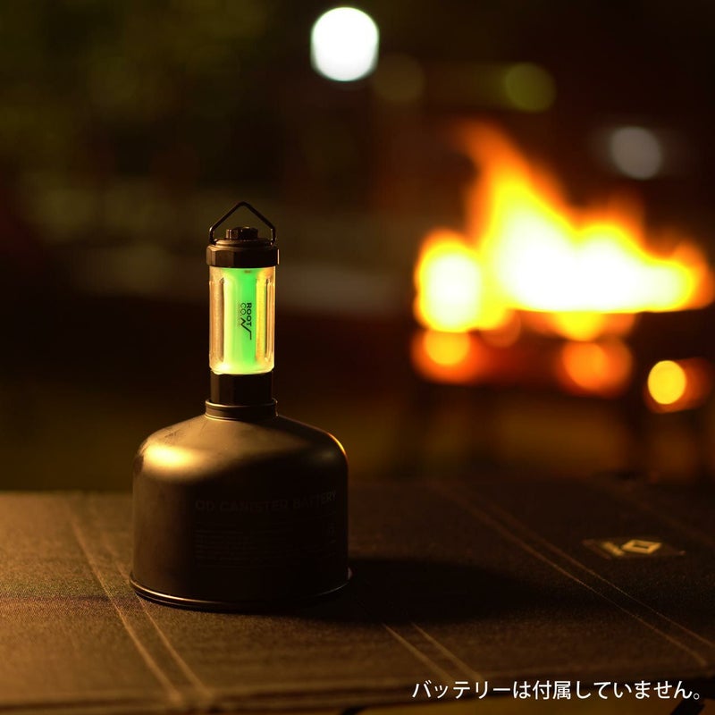 OD CANISTER BATTEY」自体が「PLAY LED MINI LANTERN OCTA.」のランタンスタンドとしても機能します。