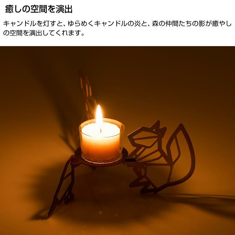 揺らめくキャンドルの炎と動物たちの影が癒しの空間を演出。