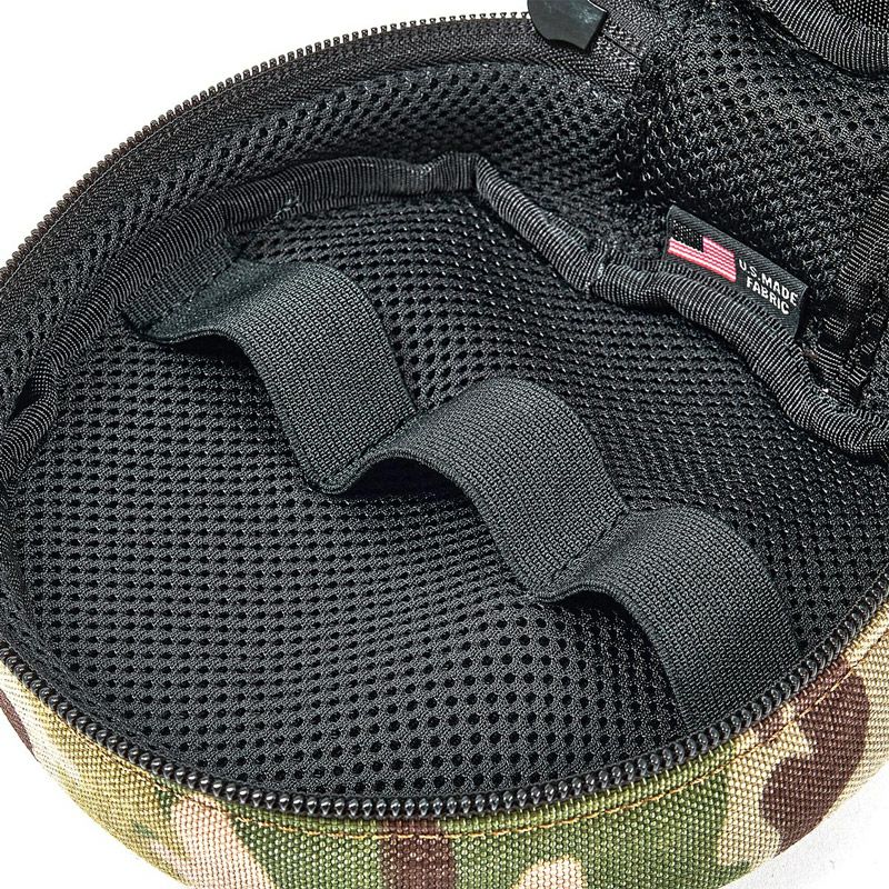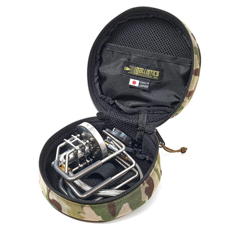 名前通り丸型でしっかり目の収納ケースになります。 内部3連のループを利用してゴールゼロランタンを並べたり、SOTOのST-310やST-330バーナー、BRUNT製モスキートマインが収まります。 他にも丁度良いサイズのモノを探してみて下さい。