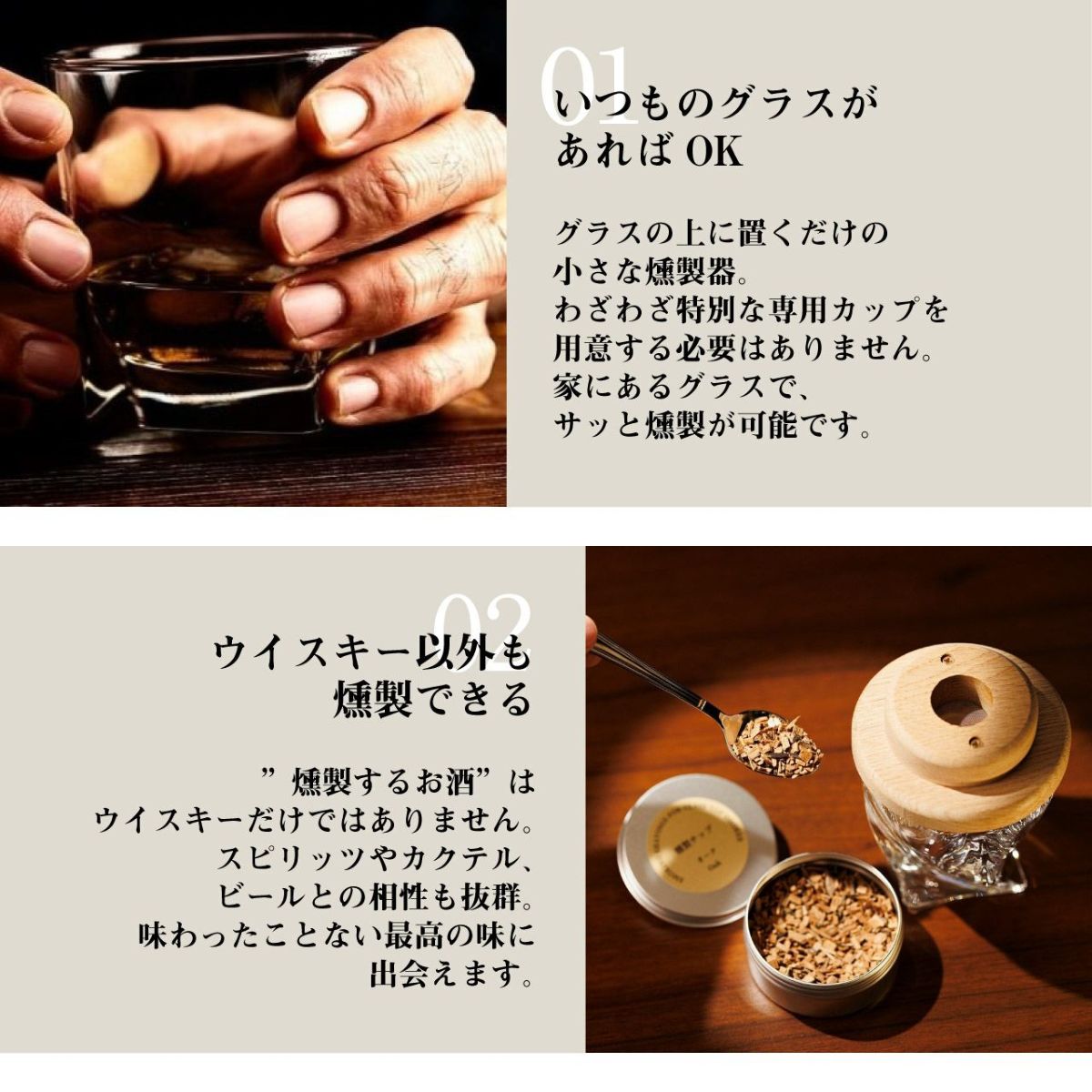 他の画像を見る いつものお酒をグレードアップ。 グラスの上で、お酒をお手軽に燻製。 TARU HOLIC グラストップスモーカー本体・桜チップ 販売価格 ¥ 8,200 税込 カートに入れる お気に入りに登録する
