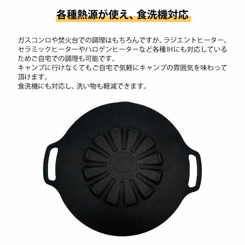 対応熱源:ガス、IH調理機、直火、炭火、ラジエントヒーター、セラミックヒーター、ハロゲンヒーター