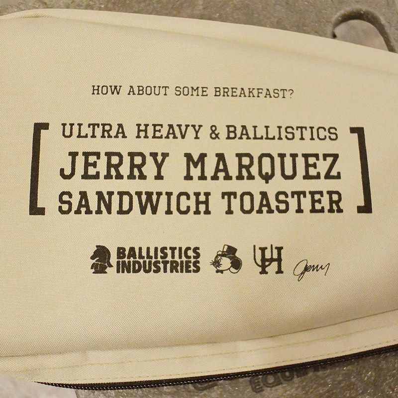 表面にも装飾として「ULTRA HEAVY WITH BALLISTICS PRESENTS JERRY MARQUEZ SANDWICH TOASTER」という立体文字をレイアウトしました。