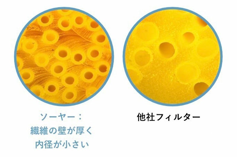 ソーヤーのホロウファイバーは繊維一本一本の壁が厚く、独自調査の結果、他の主要ブランドと比較しても