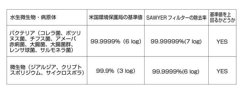 ソーヤーはポータブルな浄水器としては世界最高水準の浄水性能を誇る浄水フィルターです。