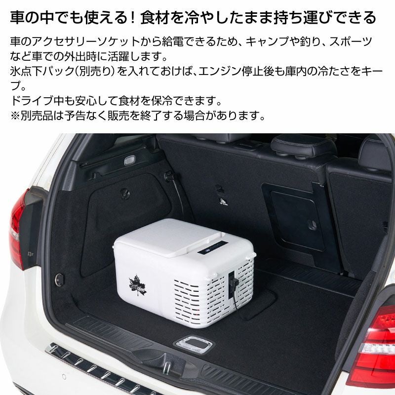 車載際は凍結した氷点下パックを1つ入れておけば、サービスエリアなどでエンジンOFF時でもしばらく庫内を低温に保冷することができます。