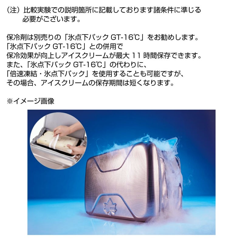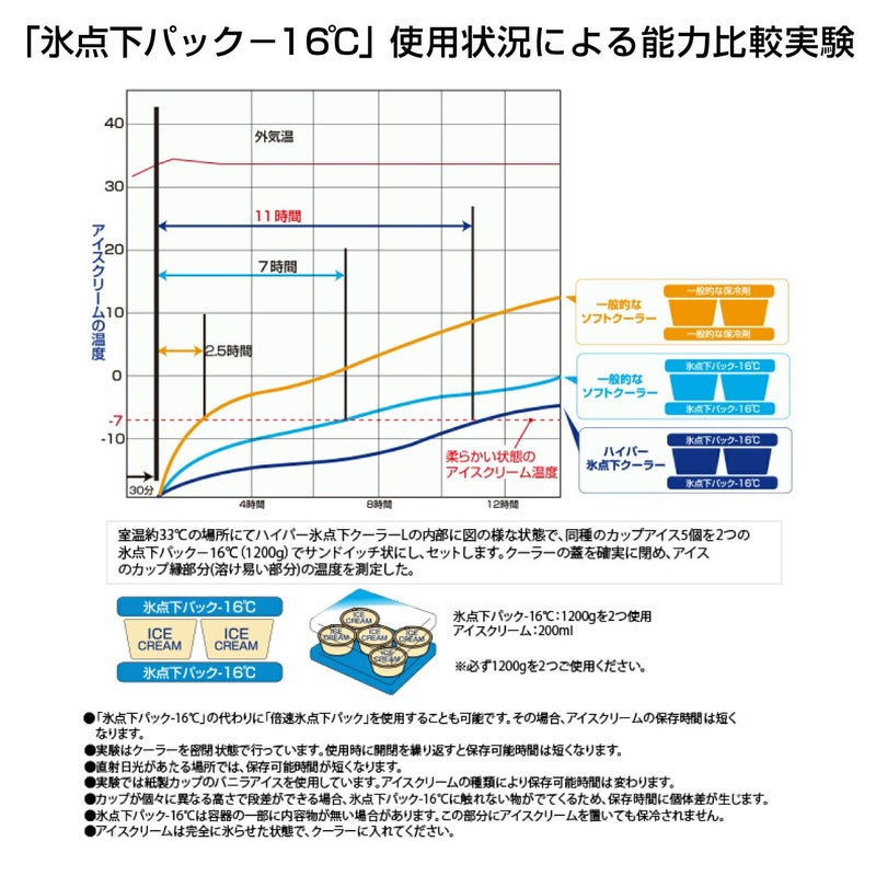 驚異の保冷力!氷点下パック使用でアイスクリームが約11時間保存可能!