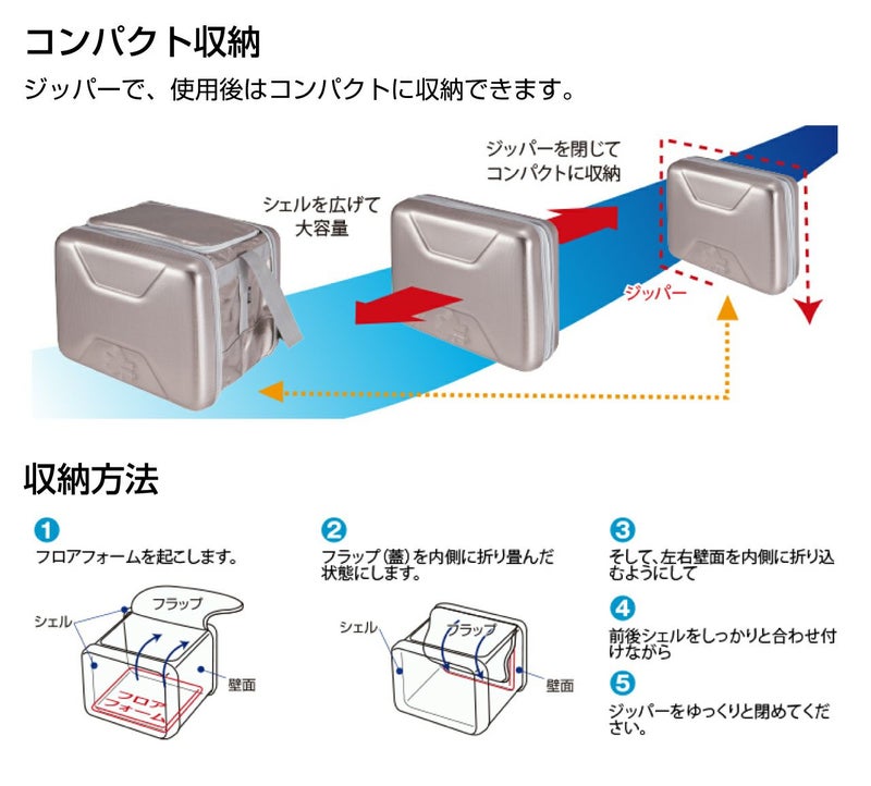 収納場所に困るハードクーラーと違い、使わない時は折りたたんでコンパクトに。